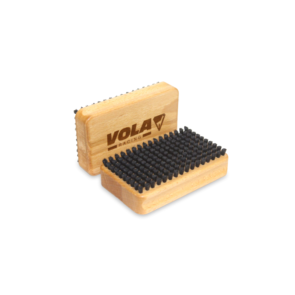 La brosse doit être utilisée parallèlement au ski / Le brossage se fait de la spatule vers le talon en faisant plusieurs passages pour enlever le fart restant et faire ressortir la structure.